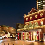 豪華なシャンデリアと、やわらかく温かみのある光が街を彩る恵比寿ガーデンプレイスのクリスマスイルミネーション。華やかながら派手な印象を与えない上品な演出は、大人の街・恵比寿に見事に調和している。