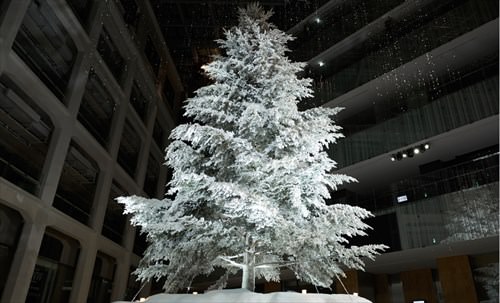 1Fから5Fまで吹き抜けのアトリウムに、日本最大級となる高さ約14.5mのクリスマスツリーが登場。ツリーは真っ白な雪化粧をまとい、幻想的な白銀世界が広がる。