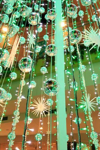 一番の特徴は、開放感あふれる中庭に立つ、クレーンイルミネーション。何色にも輝く幻想的な光のグラデーションが、豊洲の海に彩りを添える。また、約5万球のLEDを使用し、水の輝きをイメージした華やかなイルミネーションも展開。