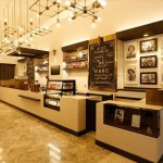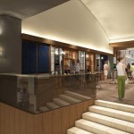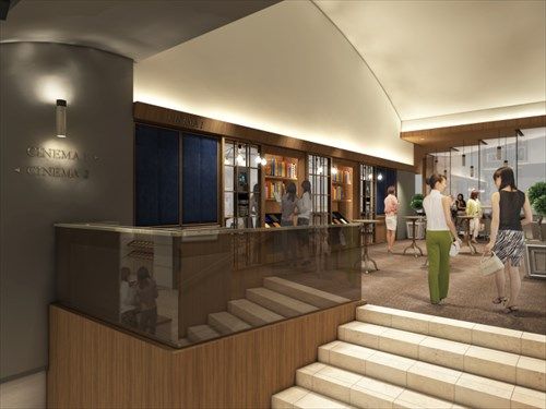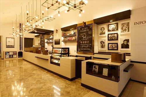 ウッドを基調にした高級ホテルのような館内には、オリジナルメニューが自慢のカフェカウンター「& CAFE」を併設。広場が一望できる開放感あふれるペースに、テーブルやイスが設けているので、スイーツやコーヒーを楽しみながら、上映までの時間をゆったり過ごそう。