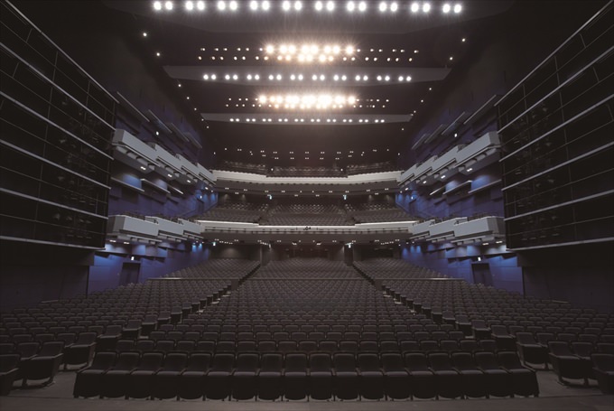 渋谷ヒカリエの11~16階に位置するミュージカル・音楽劇専用劇場。地上70mの開放的なホワイエは、昼間にはまぶしいくらいの日差しが差し込み、夜になると渋谷の夜景を一望することができます。